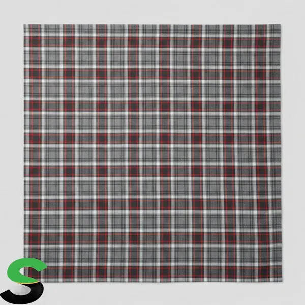 پارچه کشمیر چهارخونه طوسی قرمز | نرم، گرم و شیک برای مانتو و پالتو پاییزی