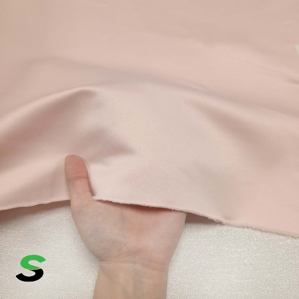 پارچه ساتن آمریکایی رنگ گلبهی یکی از انواع مختلف پارچههای ساتن است که برخلاف سایر پارچههای ساتن با درخشندگی خاص، دارای جلوهای مات است. این ویژگی به طور خاص باعث جذب طرفداران زیادی شده است. سطح زیرین و بیرونی این پارچه کاملاً صاف و لطیف است، اما ممکن است هنگام لمس، الیاف پارچه را در قسمت داخلی آن حس کنید. این پارچه به دلیل مات و نسبتا ضخیم بودن، نیازی به آستر ندارد. با ایستایی آهاردار و کتی، ساتن آمریکایی یکی از بهترین گزینهها برای دوخت کت و پیراهنهای مجلسی زنانه به شمار میآید.