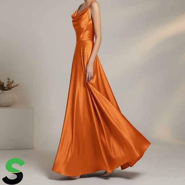 پارچه ساتن آمریکایی چینی رنگ نارنجی انتخابی شیک و باکیفیت برای دوخت انواع لباس‌های مجلسی و کاربردهای متنوع خیاطی است. این پارچه دارای بافتی لطیف، نرم و لَخت بوده و به دلیل سطح براق و درخشان خود، جلوه‌ای خاص و چشمگیر به لباس می‌بخشد.